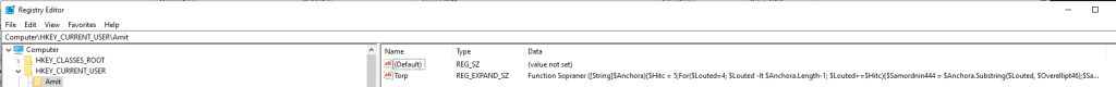 The run key contains code that executes the function in HKCU\Amit